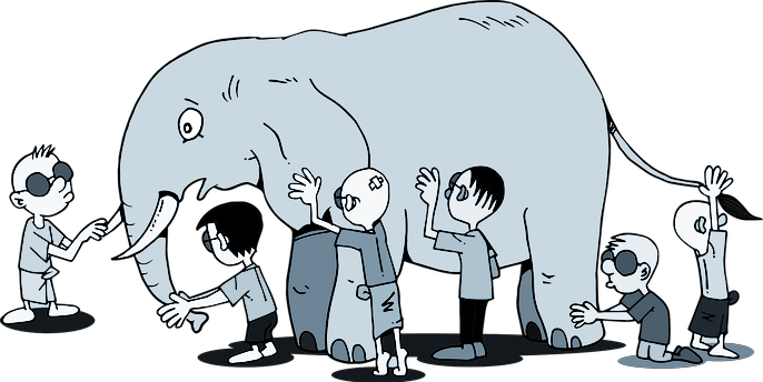 Es gibt viele Wege das Leben als solches zu versuchen zu verstehen. Berühre einen Elefanten mit geschlossenen Augen - jeder, der Künstler, der Poet, der Techniker, der Arzt.... wird ein anderes Bild haben. Schau in den Himmel - ist er leer oder ist er erfüllt mit Sternen, Sonne, Monde, mit Atmospähre? Maybe it is - maybe it's not?